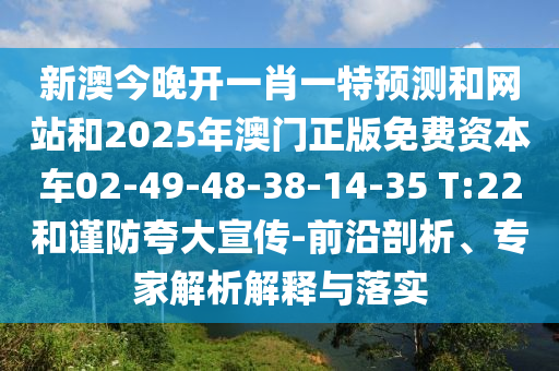 新澳今晚開一肖一特預測和網(wǎng)站和2025年澳門正版免費資本車02-49-48-38-14-35 T:22和謹防夸大宣傳-前沿剖析、專家解析解釋與落實