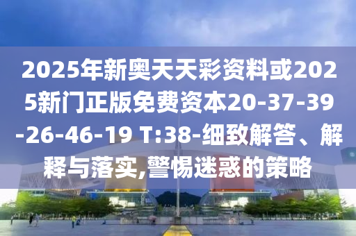 2025年新奧天天彩資料或2025新門正版免費資本20-37-39-26-46-19 T:38-細致解答、解釋與落實,警惕迷惑的策略