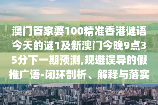 澳門管家婆100精準(zhǔn)香港謎語(yǔ)今天的謎1及新澳門今晚9點(diǎn)35分下一期預(yù)測(cè),規(guī)避誤導(dǎo)的假推廣語(yǔ)-閉環(huán)剖析、解釋與落實(shí)