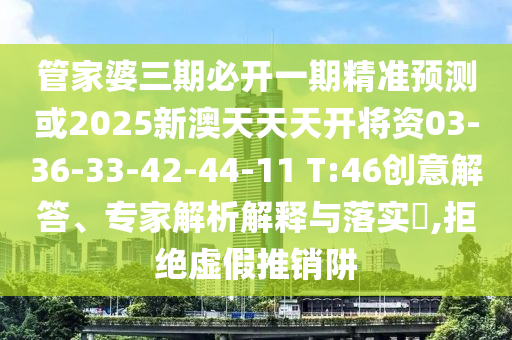 管家婆三期必開一期精準(zhǔn)預(yù)測(cè)或2025新澳天天天開將資03-36-33-42-44-11 T:46創(chuàng)意解答、專家解析解釋與落實(shí)?,拒絕虛假推銷阱
