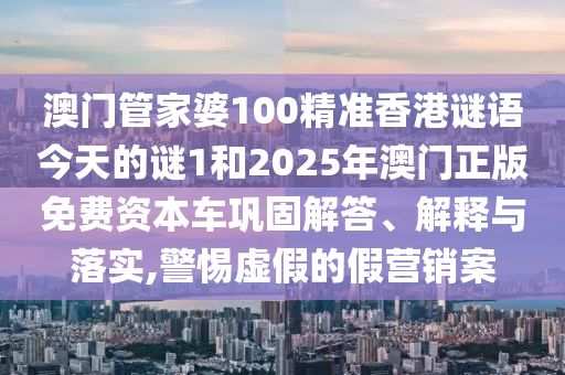 澳門管家婆100精準香港謎語今天的謎1和2025年澳門正版免費資本車鞏固解答、解釋與落實,警惕虛假的假營銷案