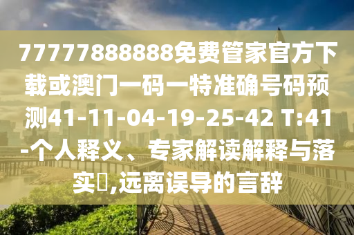 77777888888免費(fèi)管家官方下載”與“澳門(mén)一碼一特準(zhǔn)確號(hào)碼預(yù)測(cè)41-11-04-19-25-42 T:41”的釋義、專(zhuān)家解讀與落實(shí)以及警惕虛假宣傳
