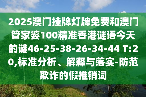 2025澳門掛牌燈牌免費和澳門管家婆100精準(zhǔn)香港謎語今天的謎46-25-38-26-34-44 T:20,標(biāo)準(zhǔn)分析、解釋與落實-防范欺詐的假推銷詞