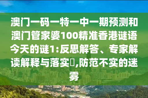 澳門一碼一特一中一期預(yù)測和澳門管家婆100精準香港謎語今天的謎1:反思解答、專家解讀解釋與落實?,防范不實的迷霧