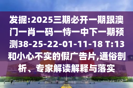 發(fā)掘:2025三期必開一期跟澳門一肖一碼一恃一中下一期預測38-25-22-01-11-18 T:13和小心不實的假廣告片,通俗剖析、專家解讀解釋與落實