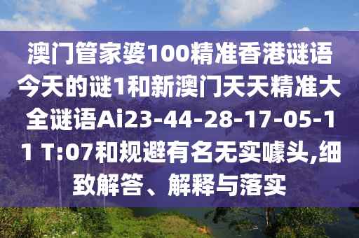 澳門管家婆100精準(zhǔn)香港謎語今天的謎1和新澳門天天精準(zhǔn)大全謎語Ai23-44-28-17-05-11 T:07的細(xì)致解答、解釋與落實(shí)