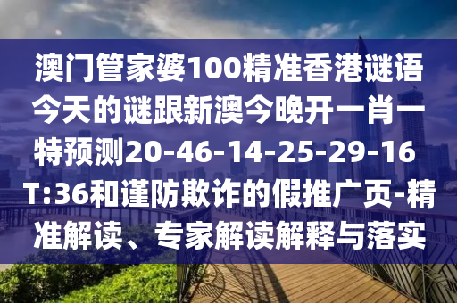 澳門管家婆100精準(zhǔn)香港謎語(yǔ)今天的謎跟新澳今晚開(kāi)一肖一特預(yù)測(cè)20-46-14-25-29-16 T:36和謹(jǐn)防欺詐的假推廣頁(yè)-精準(zhǔn)解讀、專家解讀解釋與落實(shí)