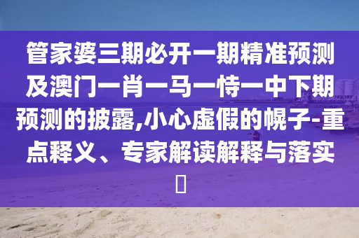 管家婆三期必開一期精準(zhǔn)預(yù)測及澳門一肖一馬一恃一中下期預(yù)測的披露,小心虛假的幌子-重點釋義、專家解讀解釋與落實?