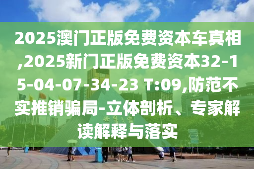 2025澳門正版免費資本車真相,2025新門正版免費資本32-15-04-07-34-23 T:09,防范不實推銷騙局-立體剖析、專家解讀解釋與落實