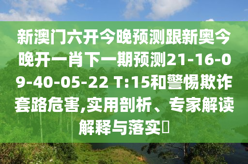 新澳門(mén)六開(kāi)今晚預(yù)測(cè)跟新奧今晚開(kāi)一肖下一期預(yù)測(cè)21-16-09-40-05-22 T:15和警惕欺詐套路危害,實(shí)用剖析、專(zhuān)家解讀解釋與落實(shí)?