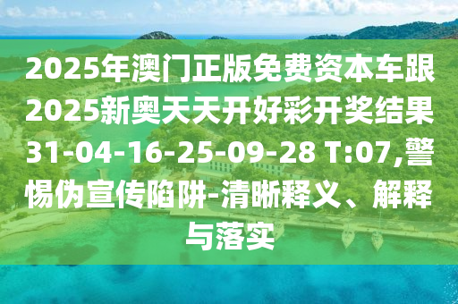 2025年澳門正版免費(fèi)資本車跟2025新奧天天開好彩開獎結(jié)果31-04-16-25-09-28 T:07,警惕偽宣傳陷阱-清晰釋義、解釋與落實(shí)