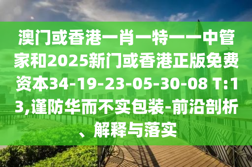 澳門或香港一肖一特一一中管家和2025新門或香港正版免費資本34-19-23-05-30-08 T:13,謹(jǐn)防華而不實包裝-前沿剖析、解釋與落實