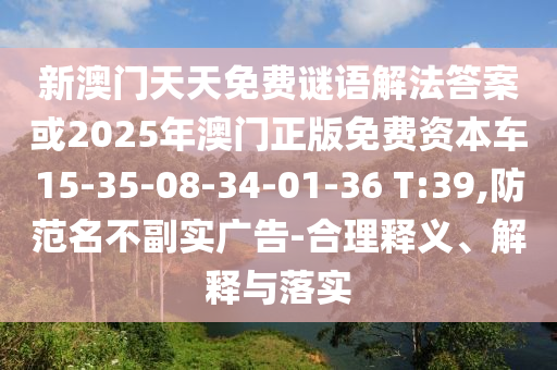 新澳門天天免費(fèi)謎語(yǔ)解法答案或2025年澳門正版免費(fèi)資本車15-35-08-34-01-36 T:39,防范名不副實(shí)廣告-合理釋義、解釋與落實(shí)