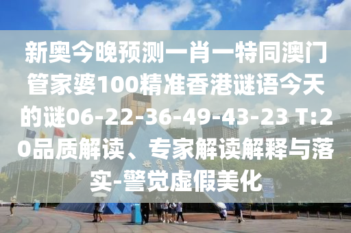 新奧今晚預(yù)測(cè)一肖一特同澳門(mén)管家婆100精準(zhǔn)香港謎語(yǔ)今天的謎06-22-36-49-43-23 T:20品質(zhì)解讀、專(zhuān)家解讀解釋與落實(shí)-警覺(jué)虛假美化