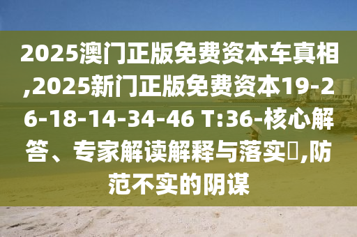 2025澳門正版免費資本車真相,2025新門正版免費資本19-26-18-14-34-46 T:36的核心解答、專家解讀解釋與落實?
