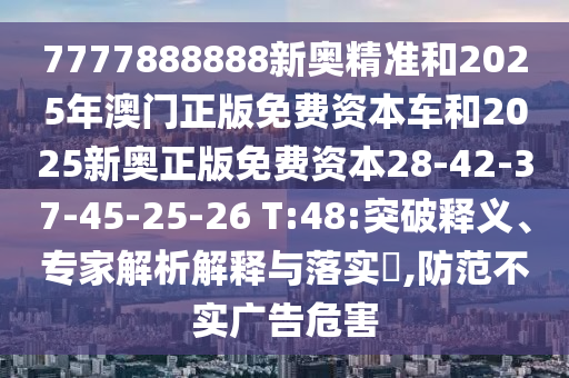 7777888888新奧精準(zhǔn)和2025年澳門正版免費(fèi)資本車和2025新奧正版免費(fèi)資本28-42-37-45-25-26 T:48:突破釋義、專家解析解釋與落實(shí)?,防范不實(shí)廣告危害