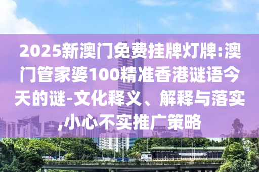 2025新澳門免費(fèi)掛牌燈牌:澳門管家婆100精準(zhǔn)香港謎語今天的謎-文化釋義、解釋與落實(shí),小心不實(shí)推廣策略