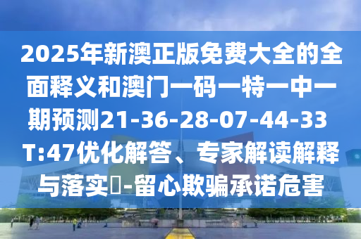2025年新澳正版免費大全的全面釋義和澳門一碼一特一中一期預測21-36-28-07-44-33 T:47優(yōu)化解答、專家解讀解釋與落實?-留心欺騙承諾危害