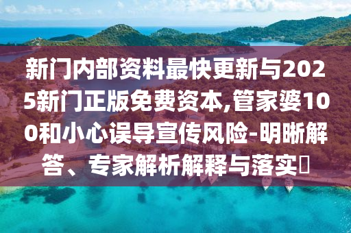 新門內(nèi)部資料最快更新與2025新門正版免費(fèi)資本,管家婆100的小心誤導(dǎo)宣傳風(fēng)險(xiǎn)”的解析與解讀