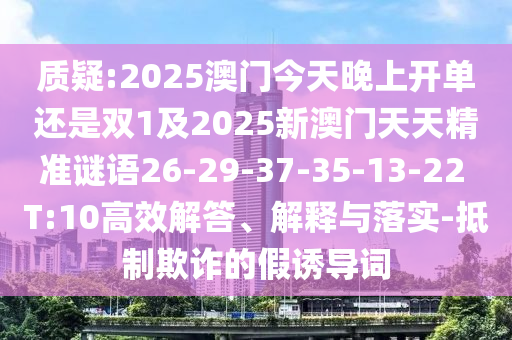 關(guān)于關(guān)鍵詞“質(zhì)疑:2025澳門今天晚上開單還是雙1及2025新澳門天天精準(zhǔn)謎語26-29-37-35-13-22 T:10,抵制欺詐的假誘導(dǎo)詞”的高效解答、解釋與落實