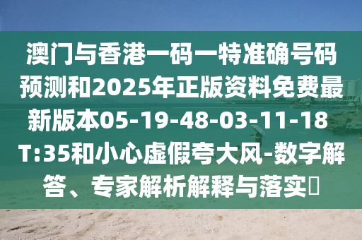 澳門與香港一碼一特準確號碼預測和2025年正版資料免費最新版本05-19-48-03-11-18 T:35和小心虛假夸大風-數(shù)字解答、專家解析解釋與落實?