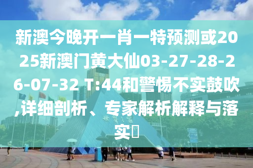 新澳今晚開一肖一特預(yù)測或2025新澳門黃大仙03-27-28-26-07-32 T:44和警惕不實鼓吹,詳細(xì)剖析、專家解析解釋與落實?