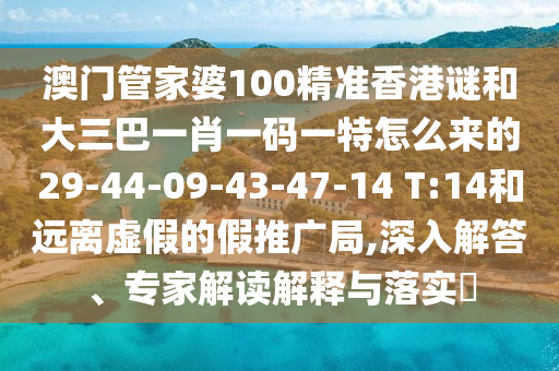澳門管家婆100精準(zhǔn)香港謎和大三巴一肖一碼一特怎么來的29-44-09-43-47-14 T:14和遠(yuǎn)離虛假的假推廣局,深入解答、專家解讀解釋與落實(shí)?