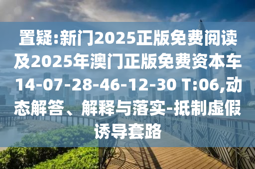 置疑:新門2025正版免費(fèi)閱讀及2025年澳門正版免費(fèi)資本車14-07-28-46-12-30 T:06,動(dòng)態(tài)解答、解釋與落實(shí)-抵制虛假誘導(dǎo)套路